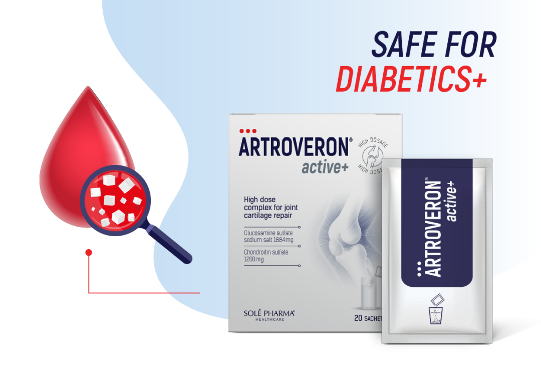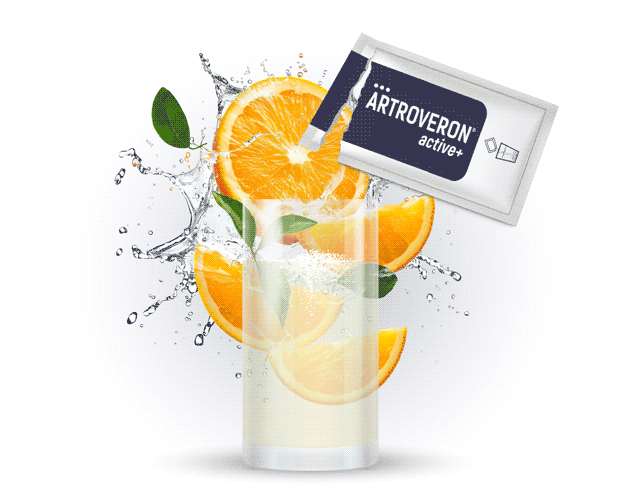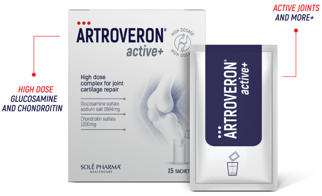 Artroveron® Active+ consists of high dose glucosamine and chondroitin sulfate. Glucosamine is one of the components of articular cartilage. Chondroitin is a natural polymer that is present in joint cartilage tissue and connective tissue. The lack of glucosamine and chondroitin can lead to degeneration of the cartilage.